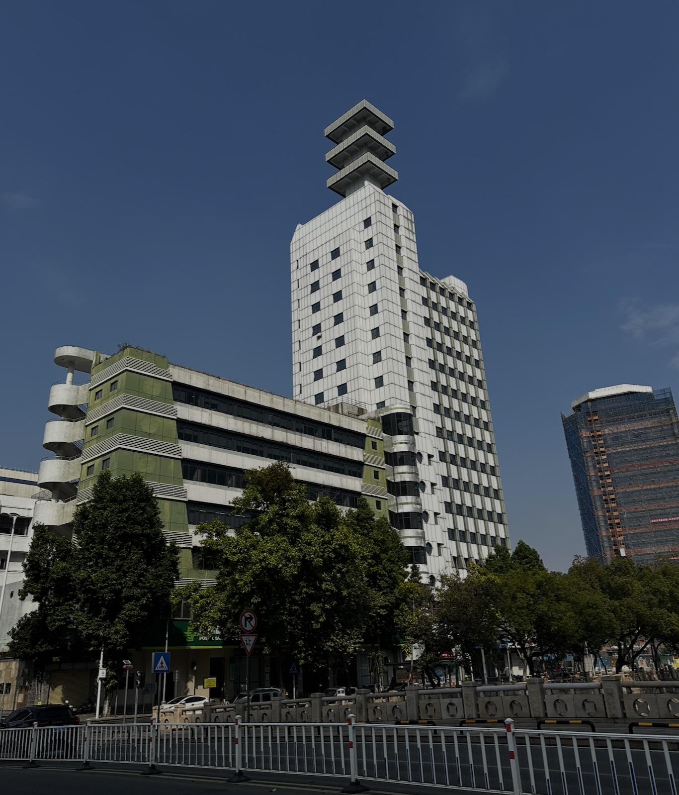 像珠海佛山这类城市大概是发展的比较早,但是又没有广州深圳更新那么快迭代那么频繁,所以城市里保留了很多y2k元素,随处可见的蓝色玻璃白色瓷砖的“未来风格”建筑,老商场里的国营感、老旧小区里黑乎乎的外立面和水泥楼梯铁栏杆等等等等,现在逛逛感觉就特别好。